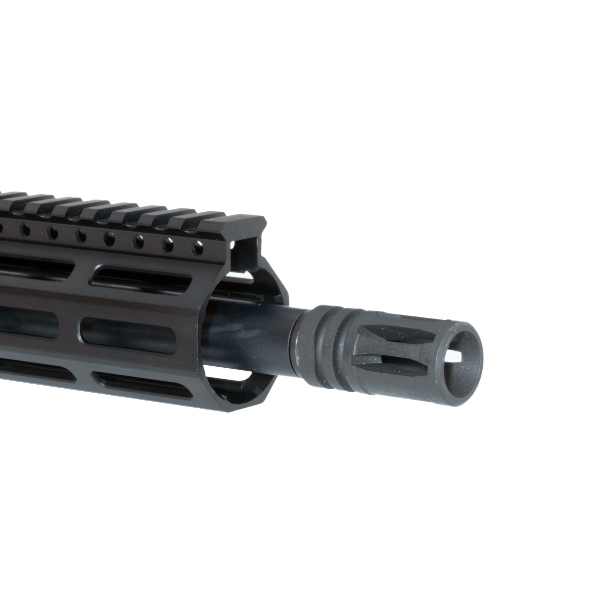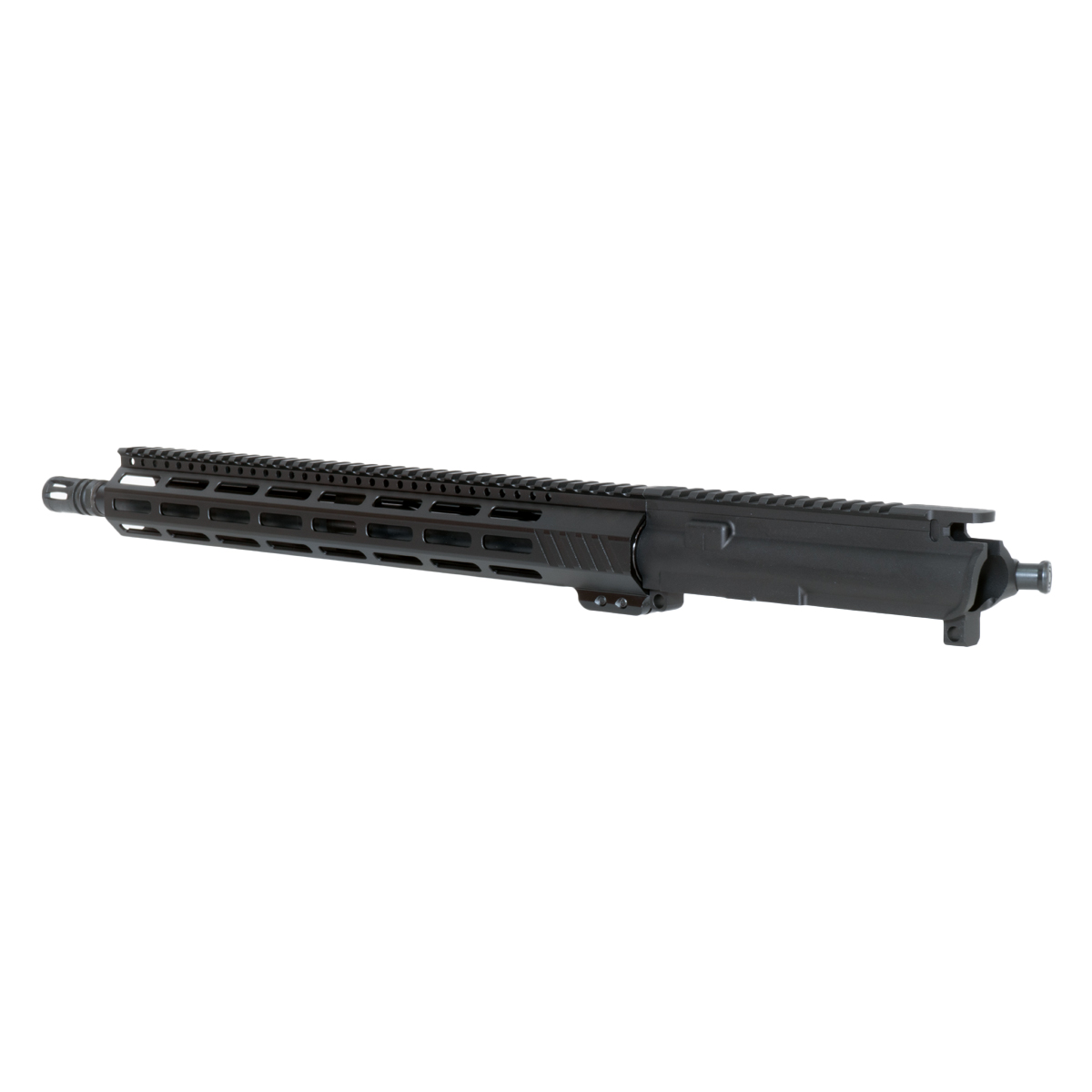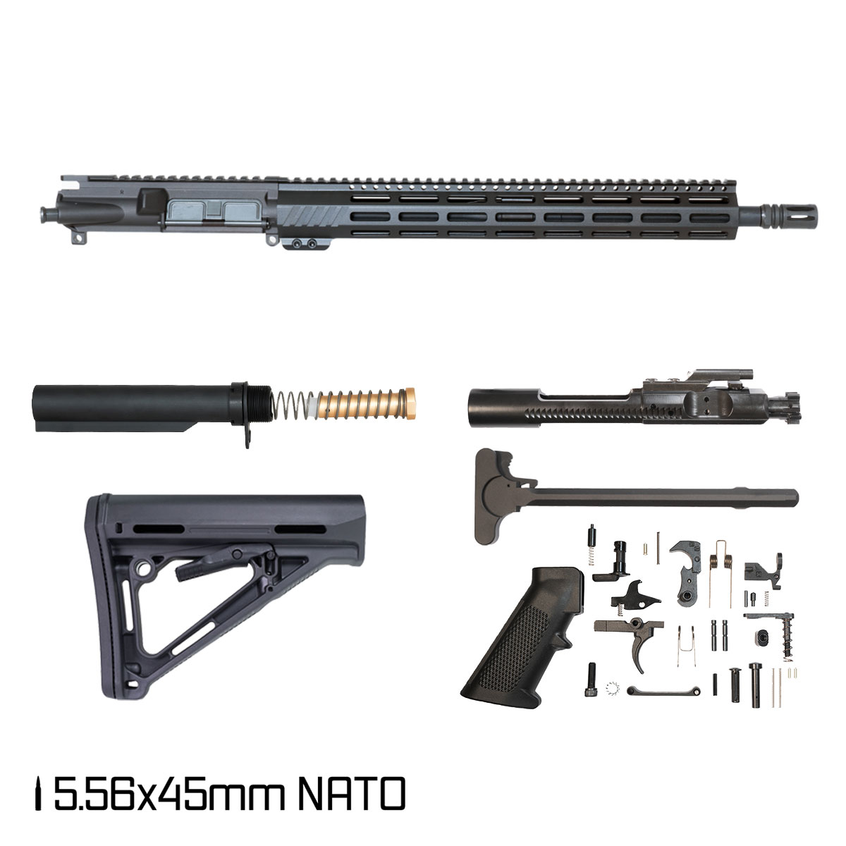 The Aegis 16-inch Carbine-Gas 1:7 Nitrided 5.56 NATO AR-15 Freefloat M-Lok Handguard Rifle Full Build Kit from Davidson Defense features a 16-inch medium profile barrel made from 4150 CrMoV steel, finished with nitride for improved durability. The 1:7 twist rate facilitates stability for a range of projectile weights. The upper receiver, constructed from 7075-T6 aluminum, is anodized for added resilience. This kit includes a Gauntlet Arms Adjustable Carbine Stock and a robust 9310 alloy steel BCG, ensuring optimal performance. The freefloat M-Lok handguard, made from aircraft-grade 6061-T6 aluminum, provides versatility for accessory attachment while keeping the weight down. A mil-spec heavy-duty 6-position buffer tube and a standard AR-15 TPI GI Birdcage flash hider complete the package.