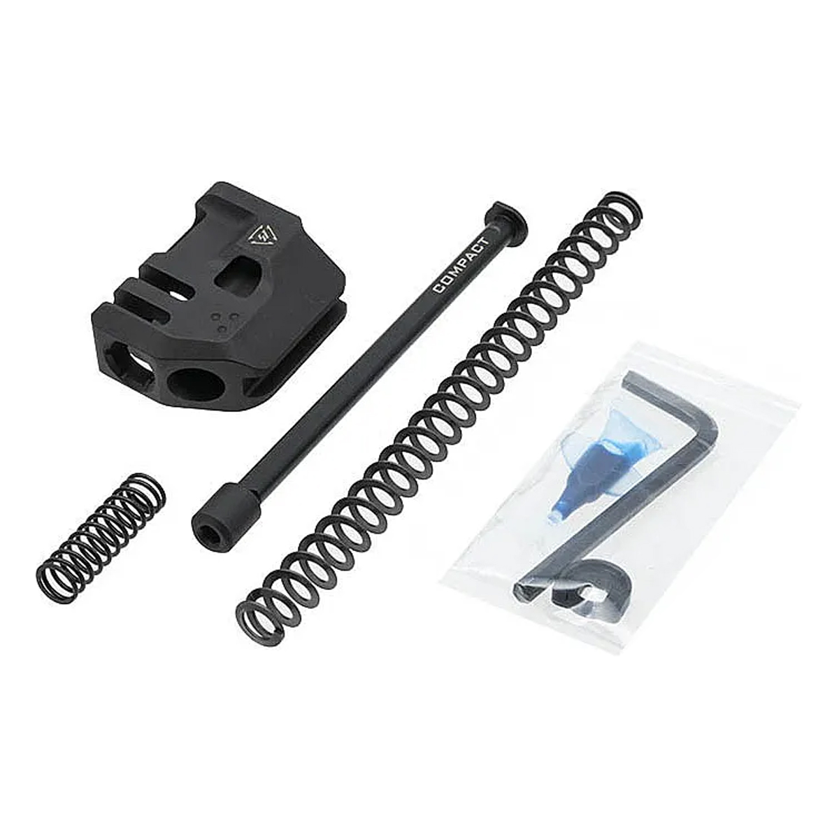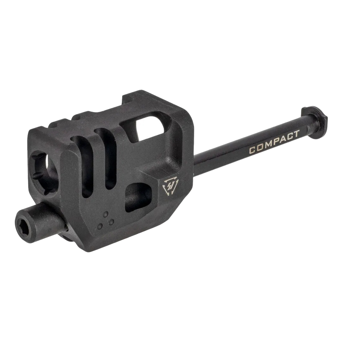 The Strike Industries Gen 3 Compact Mass Driver Comp is engineered specifically for Glock 19 models, including GEN3, GEN4, and GEN5. This muzzle device functions as a compensator, significantly reducing recoil and muzzle rise during firing, which allows for quicker follow-up shots. Constructed from durable aluminum, it combines strength with a lightweight profile, making it an ideal addition for shooters who prioritize both performance and ease of handling. Additionally, due to the unique design, a threaded barrel is not needed - simply install this in place of your guide rod with the included guide rod and spring and it's good to go.