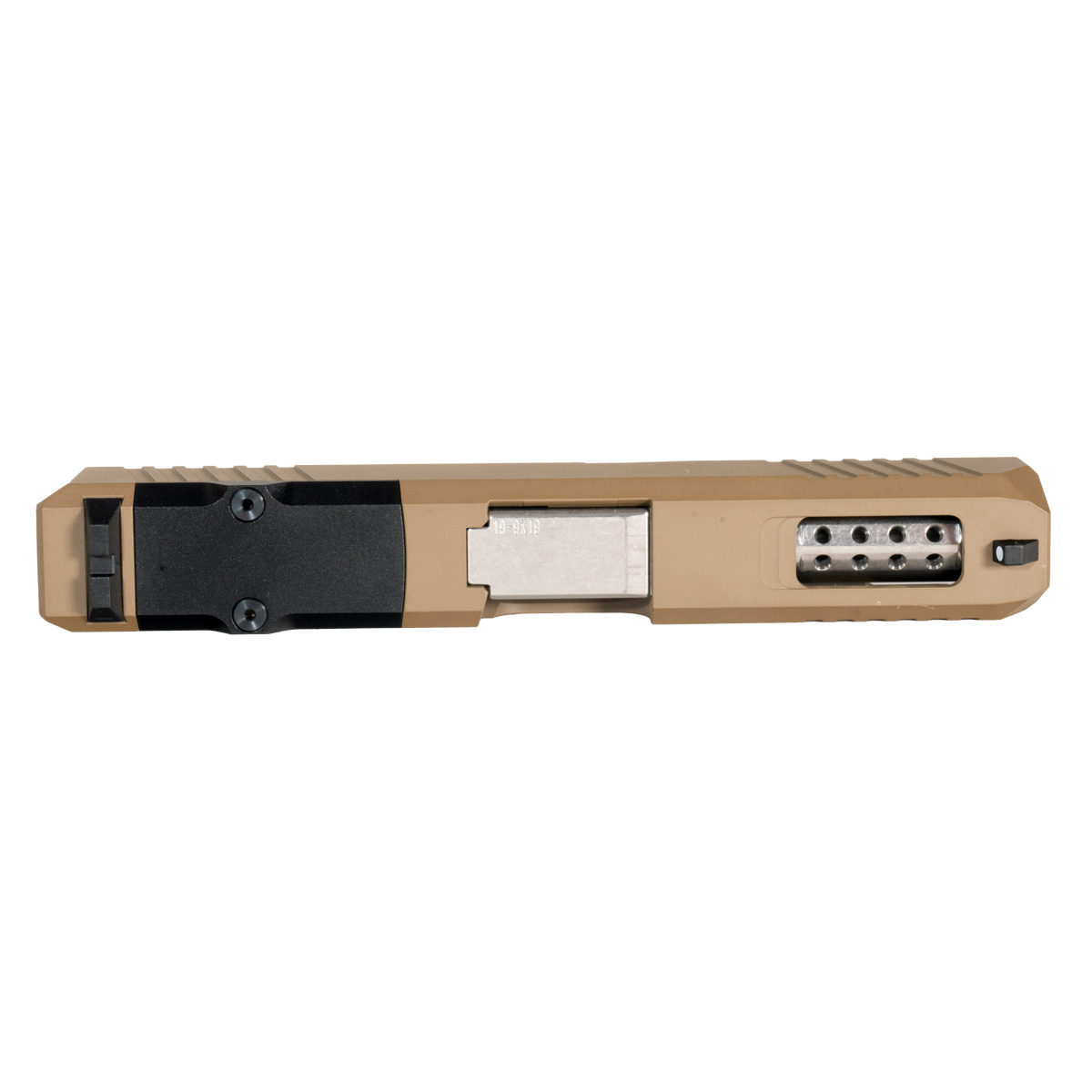 The Wayfinder Ported Polished Stainless Barrel G19 Gen 1-3 Complete Slide Kit from DTT Stiffler MFG is engineered for gunsmiths who appreciate precision and freedom. This kit is compatible with Glock 19 Gen 1-3 models and chambers 9mm (9x19) ammunition. The slide features a Graphite FDE Cerakote finish, providing durability and resistance to wear. Constructed from 17-4 stainless steel, the slide includes an RMR cut with a cover plate and a windowed design, allowing for versatile optics compatibility.
